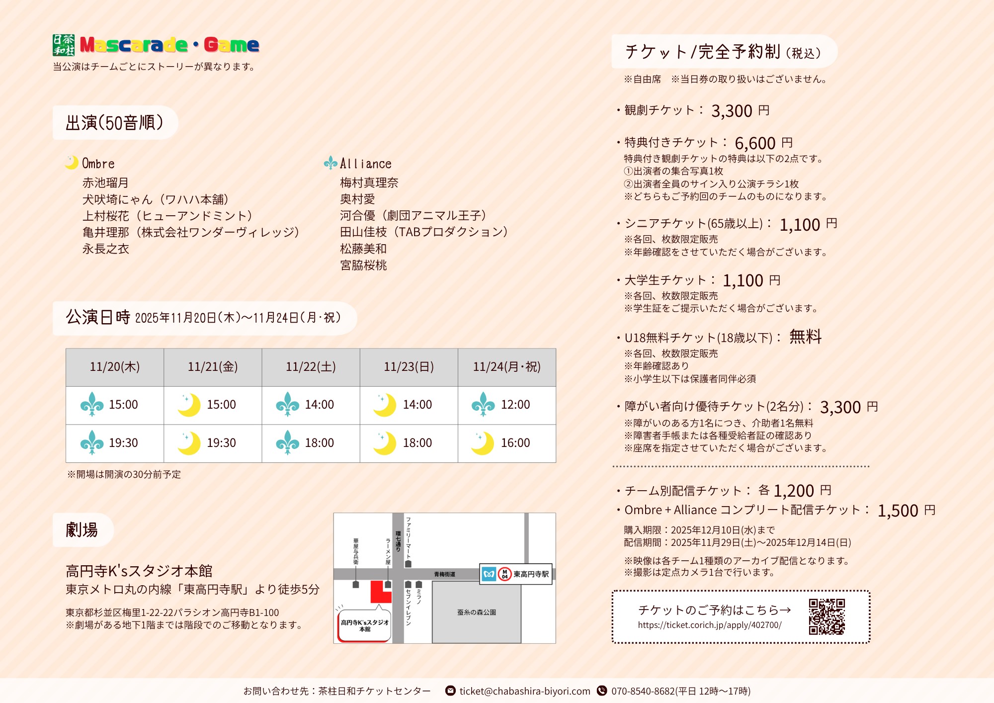 11月24日(月祝) 12:00(A) / 16:00(O)
