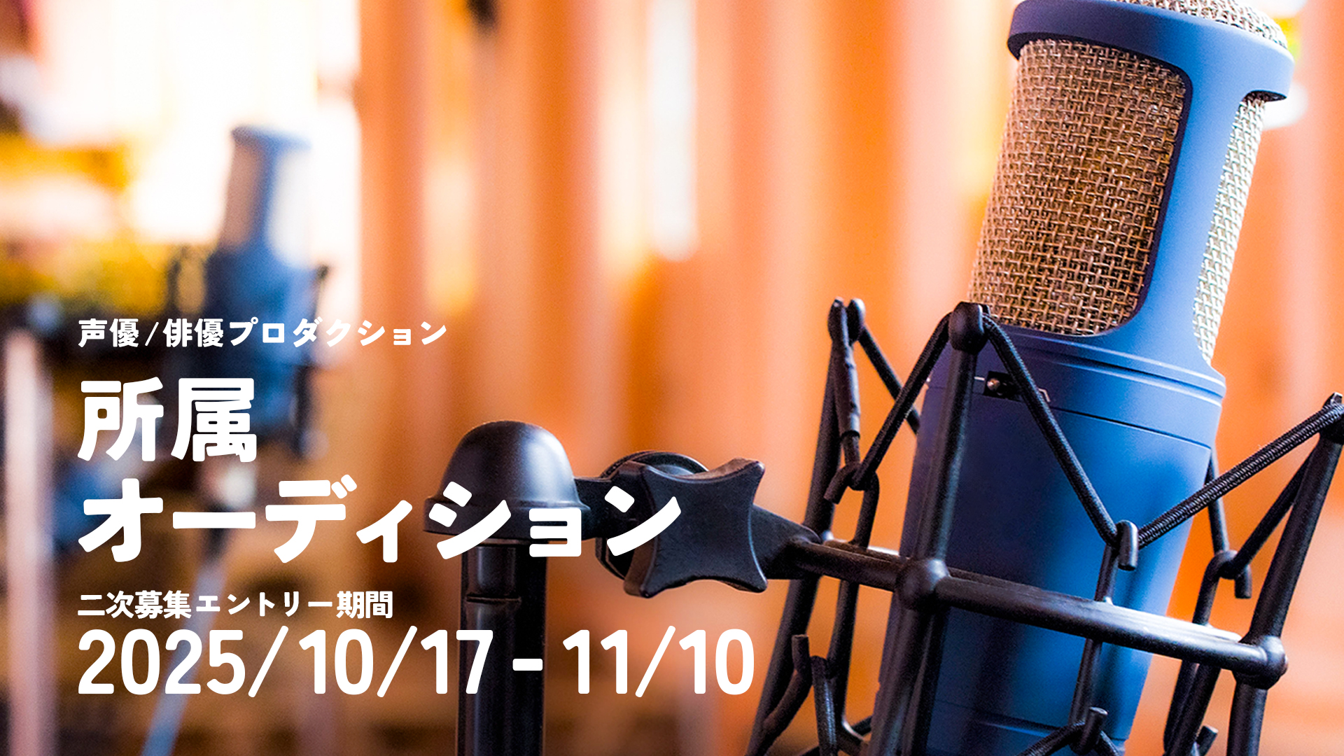 先に開催いたしました「声優/俳優/2.5次元俳優」「アニソンシンガー/声優アーティスト/アイドル声優」を目指す方、現在活動中の方を対象とした「所属オーディション」の二次募集を実施いたします。