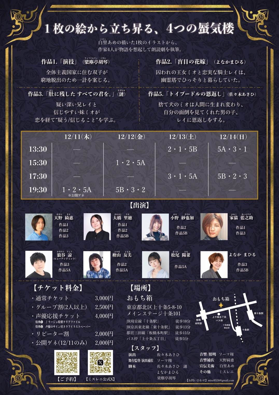 ※「狼谷 諒」は「作品3」「作品5A」に出演いたします。